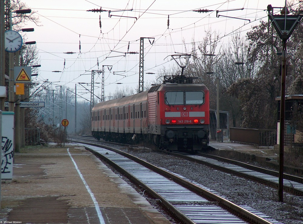 143 218-6 schiebt RB 16314 am 21.12.04 druch Halle-Ammendorf. |